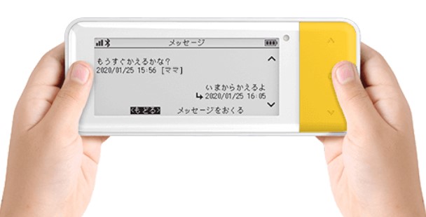 10秒ほどのボイスメッセージを双方向でやり取りが出来ます。親はアプリでそのメッセージを確認し、ボイスメッセージで返答も出来ます。防犯ブザーもついていて安心です。